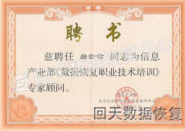 2004年3月信息产业部<<数据恢复职业技术培训>>专家顾问
